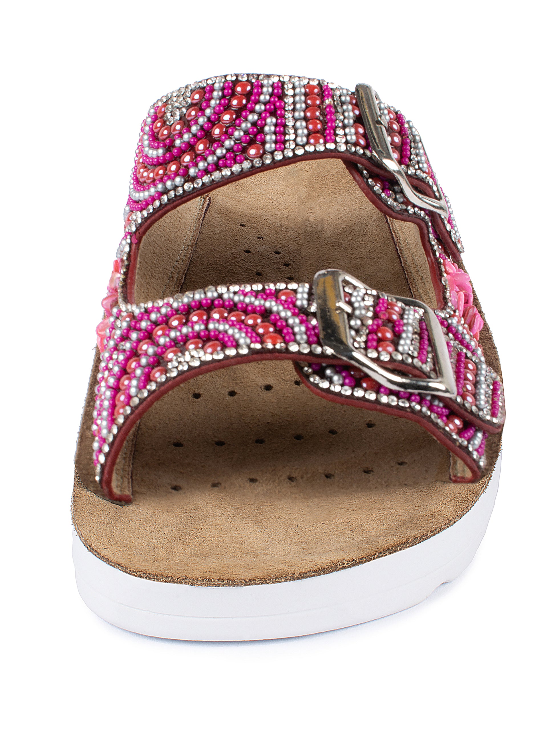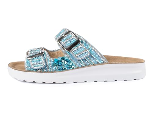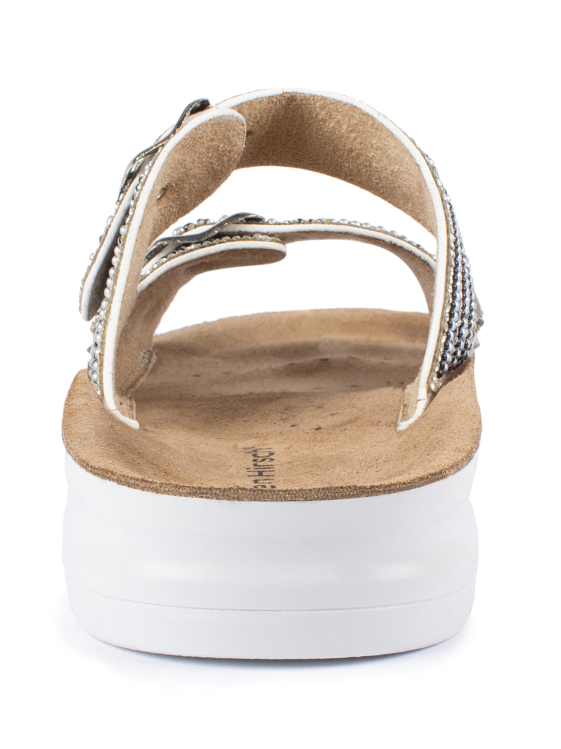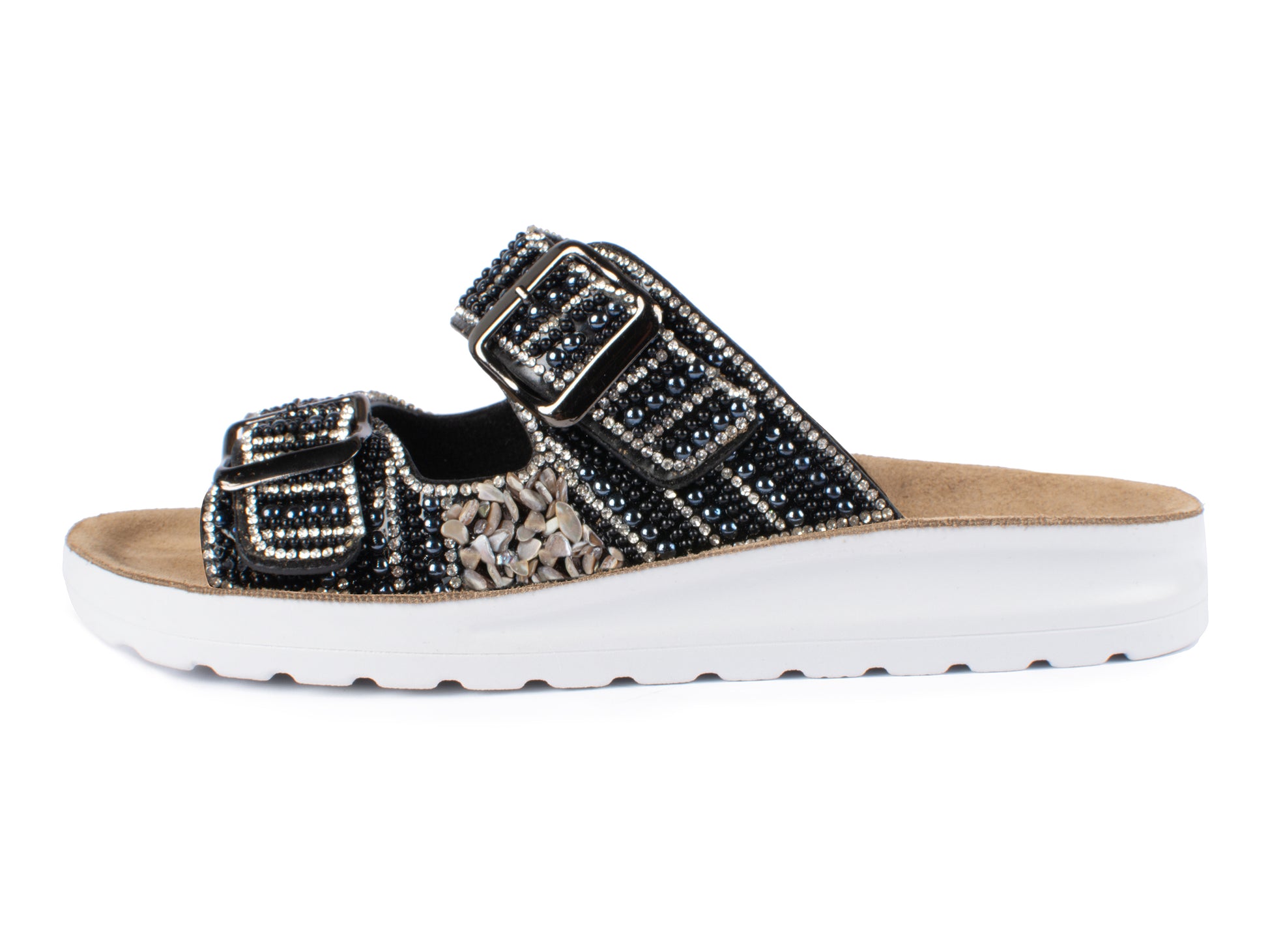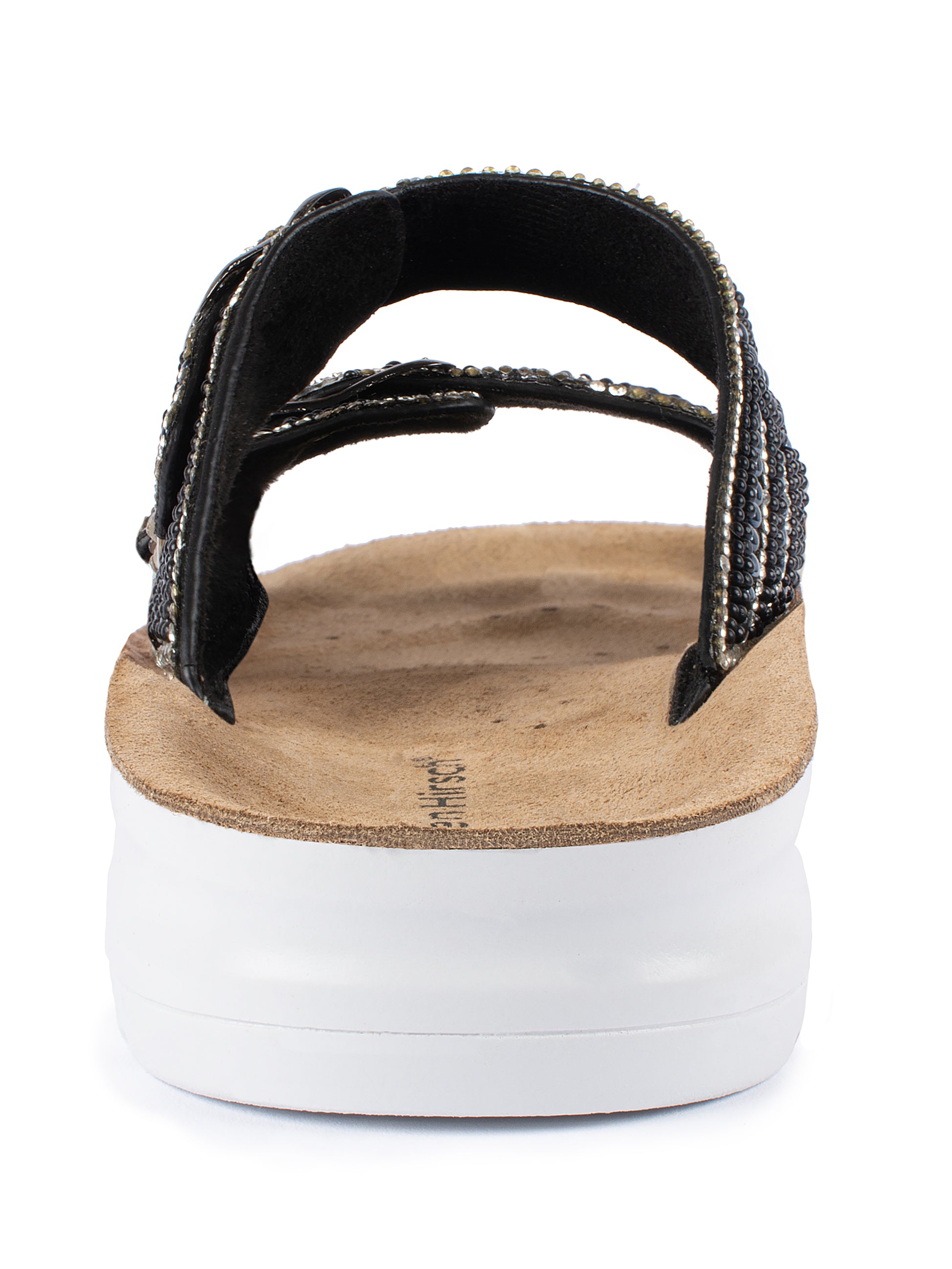 Dank der zwei verstellbaren Schließen lässt sich die Pantolette flexibel an den Fuß anpassen. In der Bequemweite G eignet sie sich ideal für normal breite Füße mit höherem Komfortanspruch. Die rutschhemmende, abriebfeste Laufsohle bietet Stabilität auf glatten Böden – drinnen wie draußen.